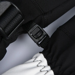 A polyspan shell, adjustable wrist webbing, and an elastic cord cuff closure ensure a snug, comfortable fit, keeping out snow and cold air.